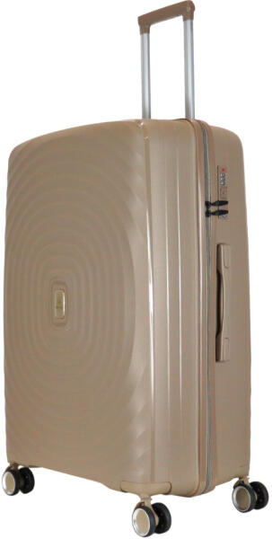 Benzi prémium Spanyol nagy méretű bőrönd. 2-4 hetes utazáshoz ajánljuk. Anyaga kemény, ütésálló Polipropilén. Strapabíró, 360 fokban finoman gördülő dupla kerekes négykerekű. Tetején és oldalán fix kézbefogó fogantyú. Tetején két szekcióban kihúzható húzokar. Körbe cipzáras záródású. Belül teljesen bélelet poliészter. Belseje két rekeszes, cipzáras elválasztóval és állítható ruha rögzítő kereszt pántokkal. Külső méretek (szélesség x magasság x mélység) 51 x 78 x 29 cm (magába foglalva a kerekeket, fogantyúkat). Súlya 4,1 kg. Térfogata 105 l. Garancia 2 év.