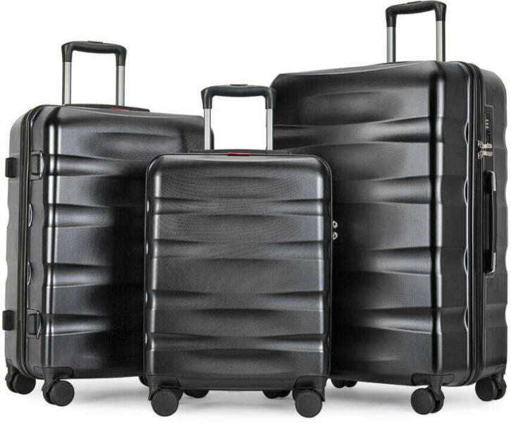 BONTOUR Wave 3 db-os Duplakerekes Bőrönd Szett, Számzárral, Fekete (120540-Black) - pepitaPepita.hu