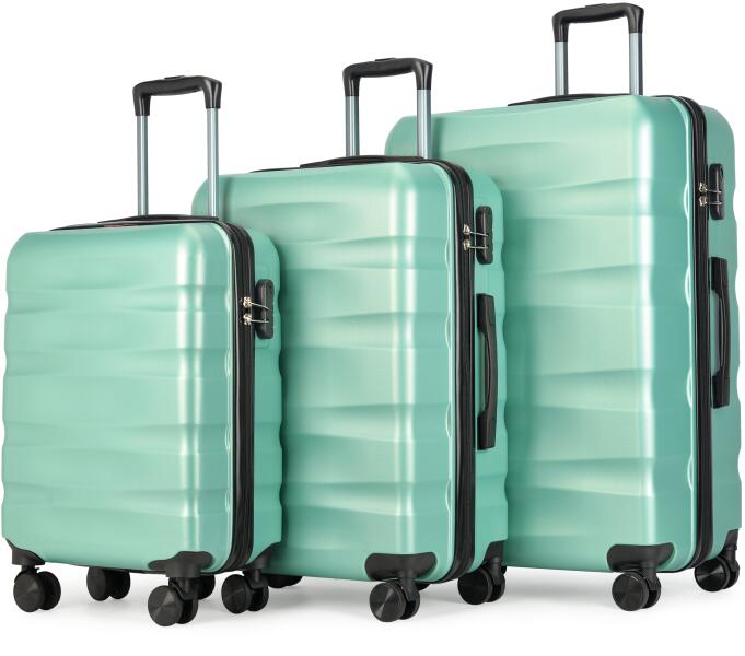 BONTOUR "WAVE"  bőröndszett, Duplakerekes Gurulós bőrönd számzárral, utazó poggyászkészlet ABS anyagból púderzöld  Színben