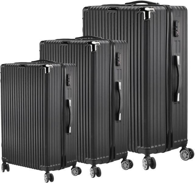 Bőrönd készlet, beépített jelszózár, 360¬∞ forgó kerekek, fekete