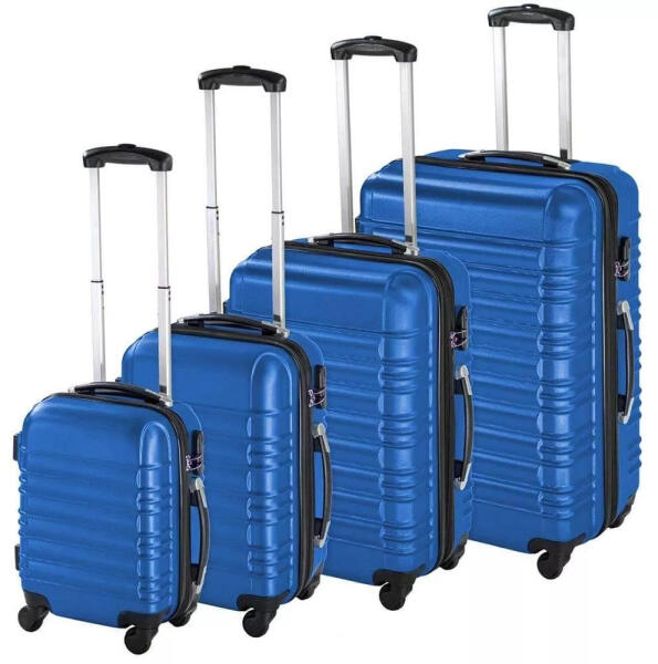 Bőröndszett az egész családnak! A szett 4 db, különböző méretű bőröndöt tartalmaz. A merev, bordázott fal védi a bőröndben található holmikat, a belső pántok pedig helyükön tartják azokat. A 4 db forgó kerék segítségével könnyedén húzható, vagy tolható magunk mellett. A teleszkópos nyél 2 állásba állítható.