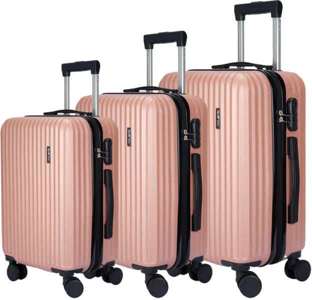 Dollcini Világjáró ABS Keményfalú Bőrönd Szett - 3 darabos, Rózsaszín ?✨ Ez a könnyű, mégis strapabíró bőrönd szett tökéletes választás minden utazáshoz. Az ütésálló ABS keményfal maximális védelmet nyújt a poggyászodnak, míg a praktikus kialakítás és a kényelmi funkciók gondtalan utazást biztosítanak. Főbb jellemzők:360°-ban forgó dupla kerekek: Könnyedén gurul minden irányba. ? Ergonomikus teleszkópos fogantyú és két kézifogó: Kényelmesen húzható és emelhető. ⬆️ Biztonsági zár: Extra védelem a személyes tárgyaknak. ? Rekeszes belső kialakítás állítható pántokkal: Rendezett és stabil csomagolás. ? Méretek:Méret Méretek (cm) Súly (kg)Nagy 75 x 47 x 30 3.78Közepes 65 x 40 x 28 3.05Normál 56 x 35 x 24 2.41Kicsi 50 x 32 x 22 2.27Kicsi 44 x 30 x 20 2.15Ez a bőrönd szett ideális választás azok számára, akik stílusosan és biztonságosan szeretnének utazni. ✈️?