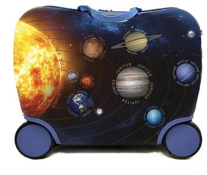 Megérkezett a Naprendszer mintával díszített gurulós gyermekbőrönd a   kis rajongóknak. Ez az ütés- és horpadásálló, vízálló, tartós (ABS) anyagból készült és  strapabíró bőrönd nemcsak gyermekünk holmijait szállítja, hanem gyermekünket is! Felső részén kényelmes  ülőfelület  van kialakítva, így ha elfárad a kis utazó, csak ráül és magát lábbal hajtva haladhat tovább.  A praktikus, 28 liter űrtartalmú , belül két tágas rekesszel - az egyik állítható ruhalefogató pánttal, a másik cipzáros zsebbel - ellátott kofferben kényelmesen elfér gyermekünk holmija.  A táska kétirányú cipzárral záródik, maximális terhelhetősége 25 kg .   Súlya kb. 1,1 kg , így a fogantyúkat használva kézben is könnyedén szállítható és repülőgépeken  kézipoggyász ként  használható.  A saját bőröndnek és az önálló csomagolásnak köszönhetően gyermekünk elindulhat a függetlenné válás útján, felelősséget vállalva saját holmijáért. Használat előtt a védőfóliát el kell távolítani, hogy a fényes felület előtűnjön.