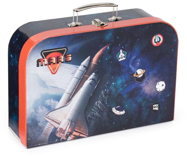 Gyermek laminált bőrönd, amely alkalmas rajzeszközök, iskolai felszerelések és játékok tárolására.