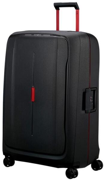 Samsonite ESSENS négykerekű, fekete-piros, csatos óriás bőrönd 81 cm 152056-1186 - minosegitaska